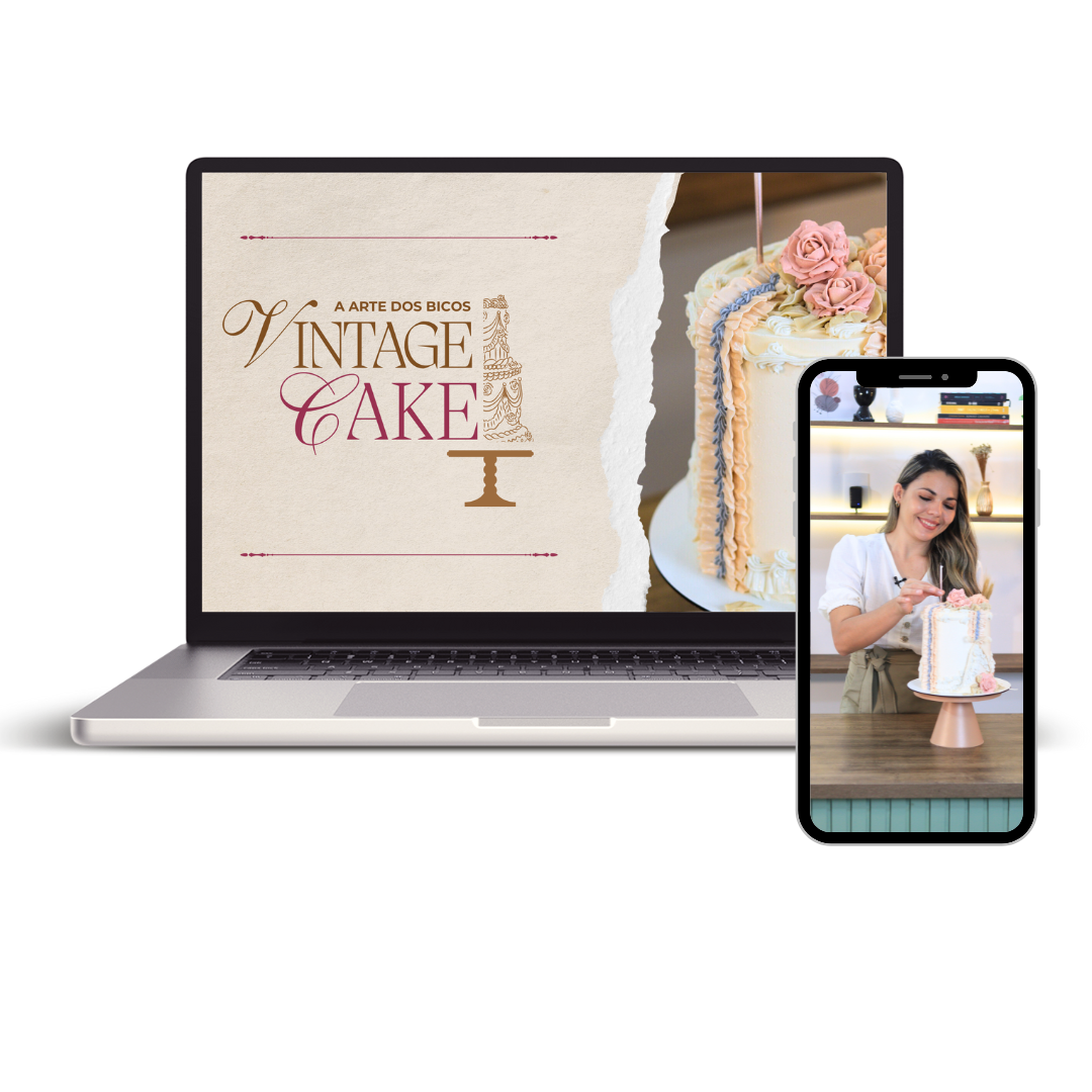 Todo o conteúdo do curso Vintage Cake será disponibilizado em uma área de membros exclusiva, com um formato prático e intuitivo, no melhor estilo Netflix. Você terá acesso a aulas em vídeo de alta qualidade, organizadas de forma clara para facilitar seu aprendizado, além de materiais de apoio completos, como apostilas e guias práticos.